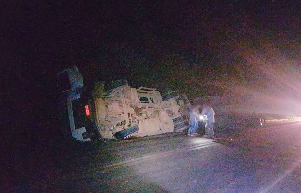 Caminhão carregado com leite tomba na LMG170 em Lagoa da Prata